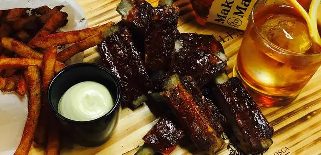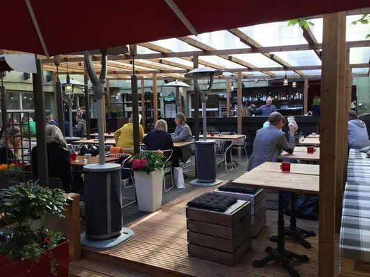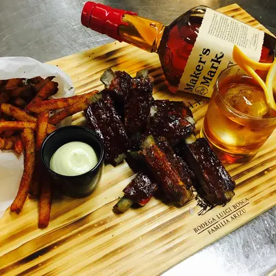 "It comprises a fashionable cocktail bar, a wine bar serving interesting small plates, and a chic dining room which is decorated in black, white and red and specialises in steaks."