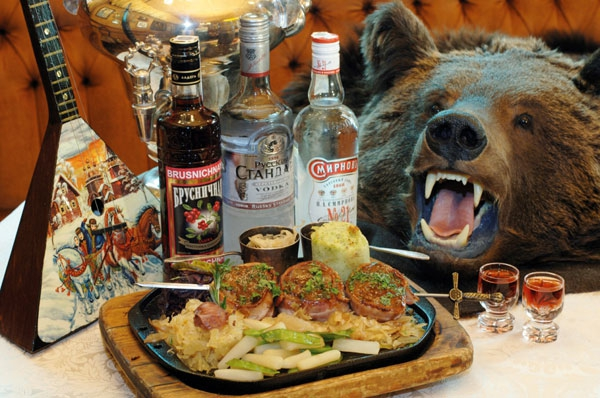 “As close as you’ll get to Russia without a visa, this atmospheric place does three kinds of bear, Russian caviar and blini aplenty; Cossack troubadours serenade at 10pm.”