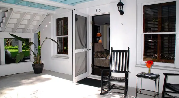 "Slow Southern mornings paired with a home-cooked breakfast can be enjoyed on the expansive wooden porch at The Rhett House Inn. Guests can also book the more modern Rhett House Inn Cottages"