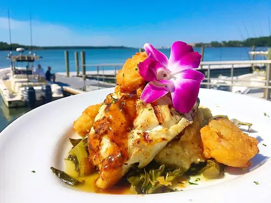 “Seafood takes the spotlight at this laid-back Hilton Head waterfront spot serving classic Southern boils, bakes and grilled options, plus sushi and Asian rice bowls.”