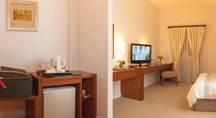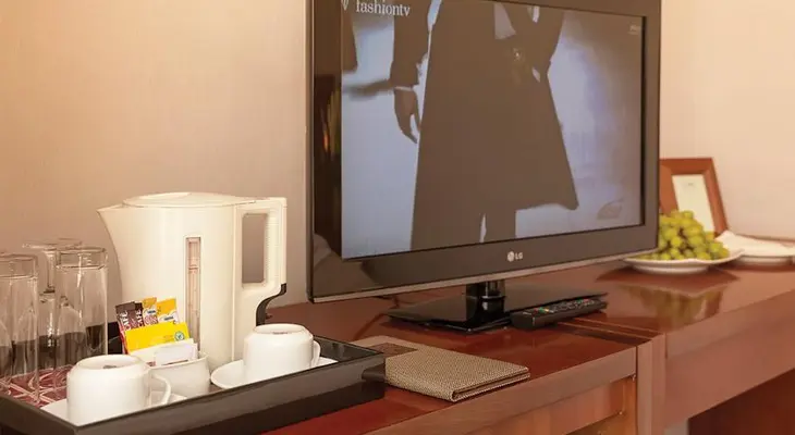 “Rates are a bit cheaper than the top 5-star hotels, but rooms are equipped with everything you might need, such as work desk, tea- and coffee-making facilities, and Wi-Fi.”