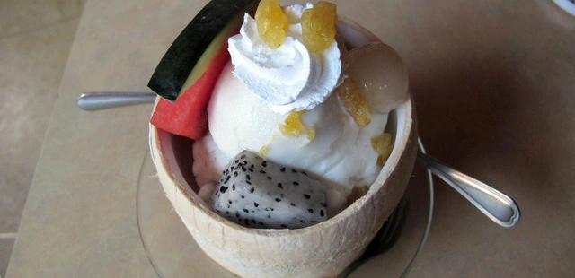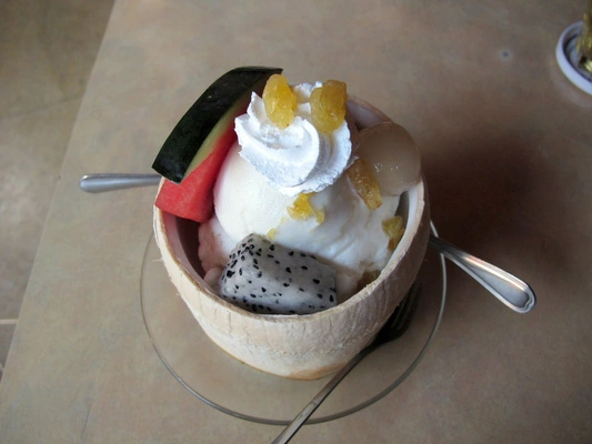 “Take the temperature down with a freshly made coconut ice cream (served in a coconut) or a cooling banana split at this long-standing local ice-cream parlour on the corner of roaring Le Loi.”
