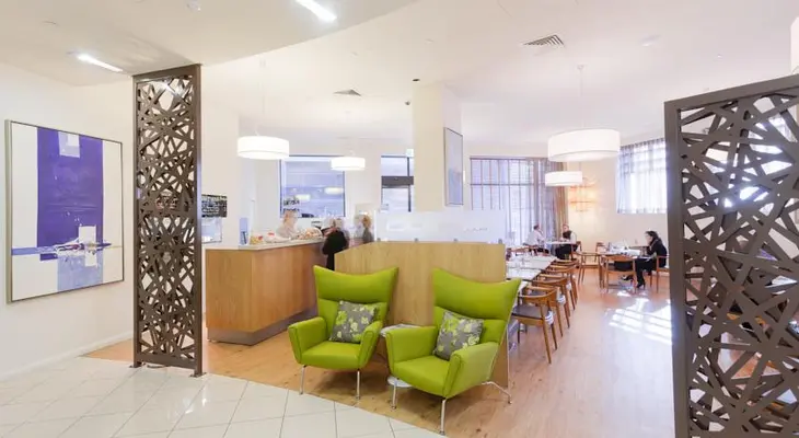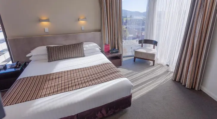 "A youthful energy at reception flows through to spacious rooms and apartments, many with sterling views of Mt Wellington's imposing bulk. Downstairs is the relaxed fifty8 cafe and bar." Full review