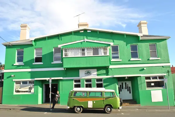 "Yet another old Hobart pub (the former Bavarian Tavern) turned into a backpackers, this one given a lurid frog-coloured paint job." Full review