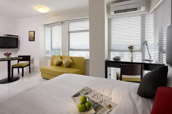 “This YWCA has 99 studios and apartments, open to men and women.”