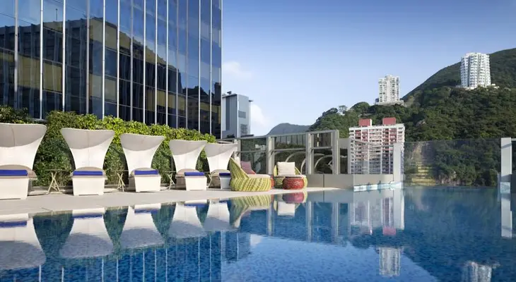 "Hotel Indigo Hong Kong Island is a trendy and visually-appealing four-pearl hotel with a full array of features that include a rooftop swimming pool . . . a hot tub, and a stylish rooftop bar." Full review