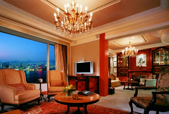 "The harbor views are, naturally, impressive here—you can even see the Shangri-La's sister hotel across the water in Kowloon."