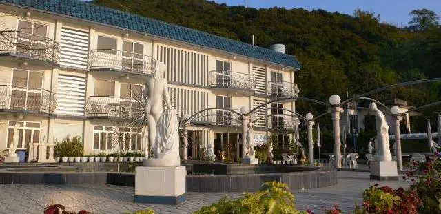 “This is the last hotel on the beach and can be identified by the ring of faux-classical statues at the front. It’s a friendly place to stay.”