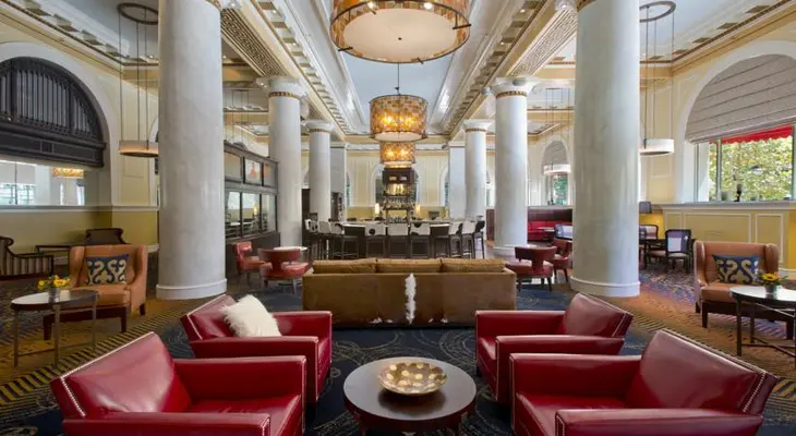 "You can feel the history in this hotel's ornate red-and-gold lobby with a 1911 bank vault reception area, soaring marble columns and coffered ceilings." Full review