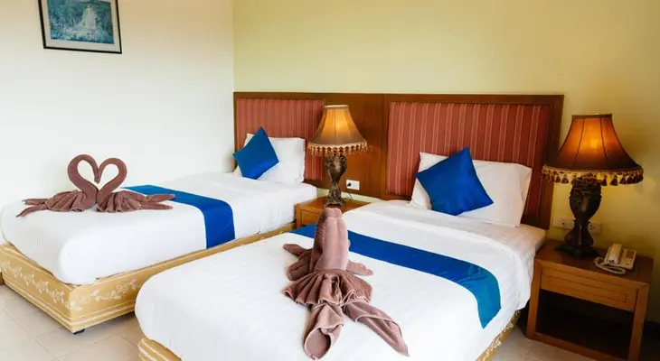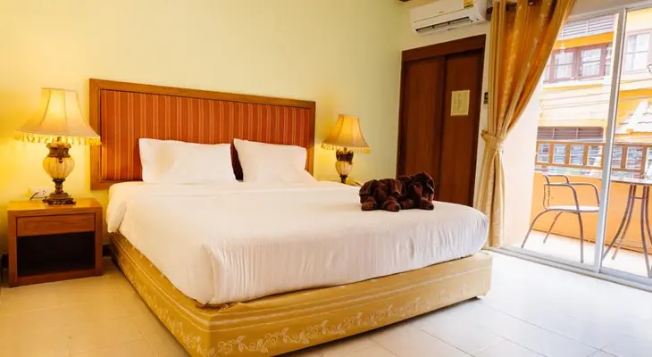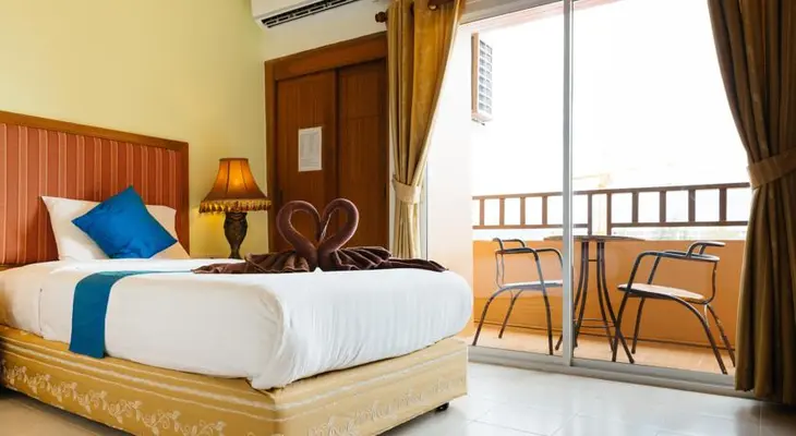 “A short walk from Hat Hua Hin, this hotel has clean, bright rooms with mini-bars, and cable TV.”