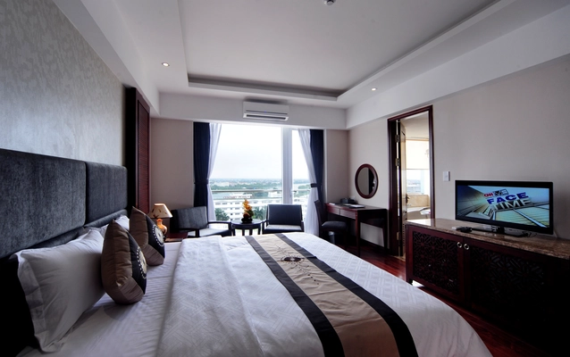 "All rooms have big windows and wood floors. Some of the river view rooms have a bathroom well-lit with natural light. Breakfast on the 13th floor with great panorama of the city and Huong River." Full review