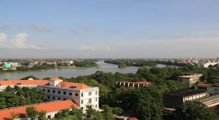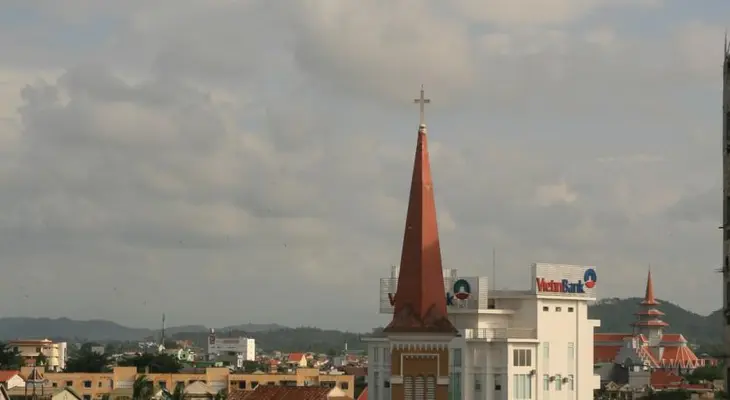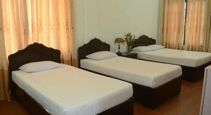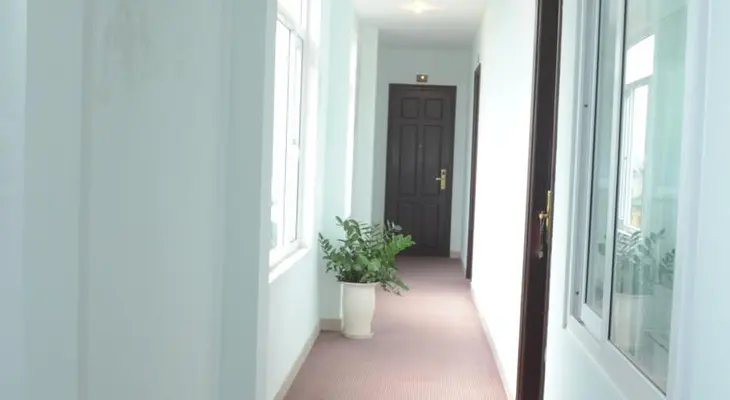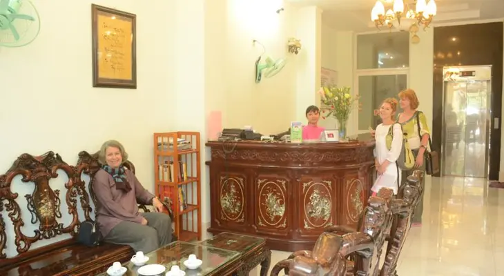 “One street away from the tourist thoroughfare, this powder-blue hotel is near to the action, yet quiet.”