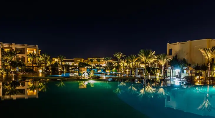 “Sprawled over the Red Sea coastline, Jaz Aquamarine Resort is an enormous upscale beachfront hotel that caters to families via 18 pools... bars, a disco, kids’ sports, and a hangout area for teens. ”