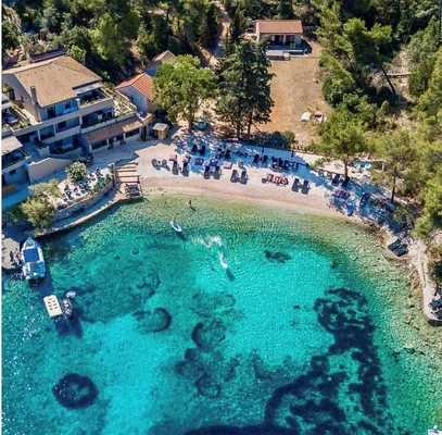 Just three miles away from Hvar Town, Little Green Bay is a quiet retreat on tiny Lozna Bay, a finger of crystal-clear emerald water that laps against a small pebble beach. — Afar Magazine