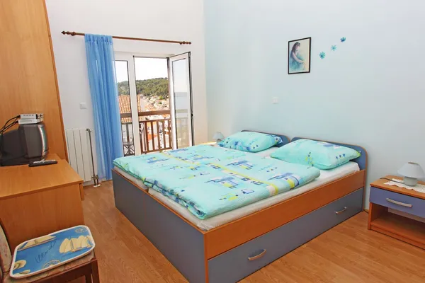 “This large, modern, three-storey house has one double room and five apartments for rent, all with balconies and bathrooms.”
