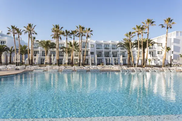 “Directly on a beach in a quiet area of Playa d’en Bossa, the luxurious Grand Palladium White Island Resort & Spa has a pool with underwater loungers and kiddy section.”