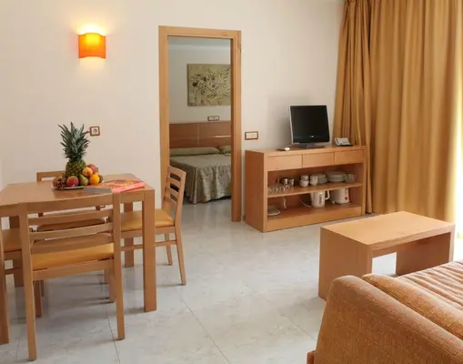 “The 123-room Atlantic is a mid-range property located a couple of blocks from a sandy beach in laid-back Es Canar.”
