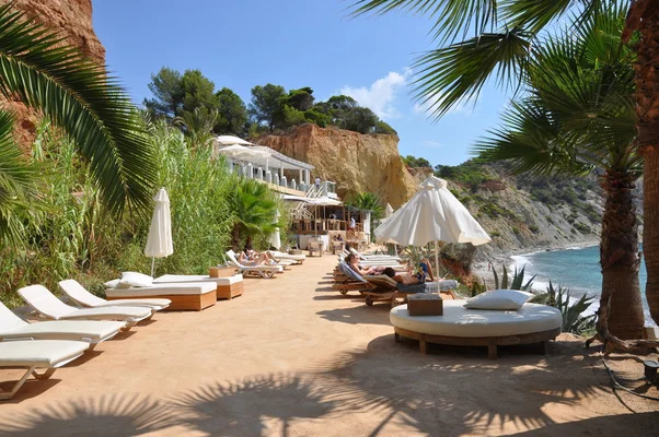 “On a remote cove beach just 500m south of Cala Llonga, Amante has a spectacular, secluded location overlooking the Med and attracts a fashionable crowd.”