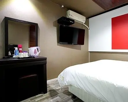 “A comfortable and stylish midrange option located at the base of Jeju Park, with varying styles of room featuring anything from claw-foot baths to arty decor and computer terminals.”