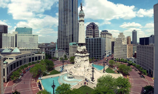 The star of Circle City’s eponymous circle, the Soldiers & Sailors Monument pays tribute to the Hoosiers who served in wars from the American Revolution to the Spanish-American War. — Where