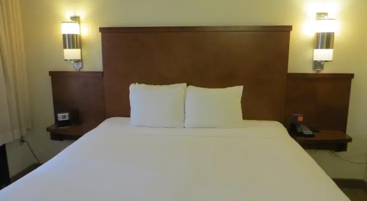 “The 134 standard and accessible guest rooms pamper visitors with luxurious Hyatt Grand Beds, refrigerators, coffee makers, 42-inch flat-screen televisions and Cozy Corner sofa beds.”