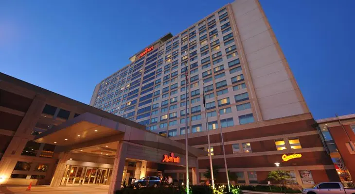 “Perched on the western edge of downtown Indianapolis, this Marriott offers location, location, location for visitors... Holds 622 guest rooms and suites, all featuring thoughtful touches.”