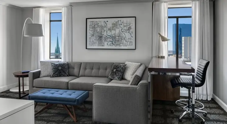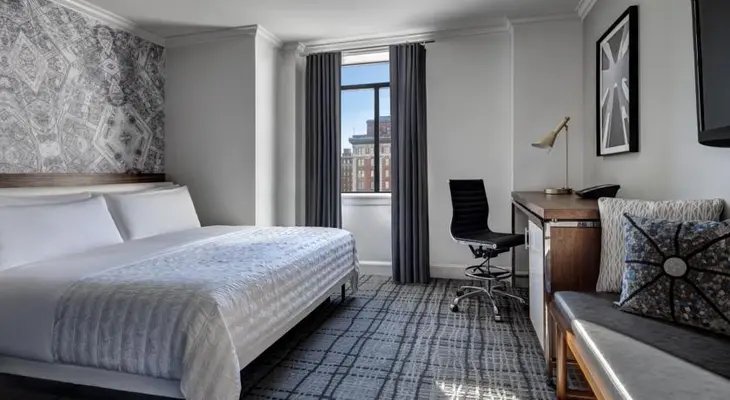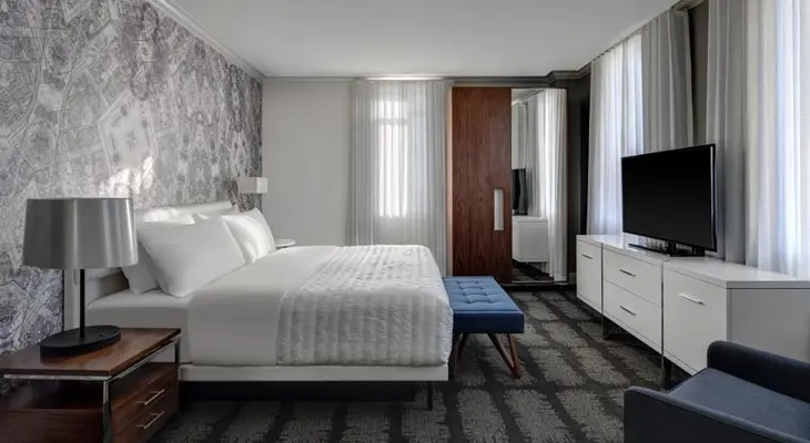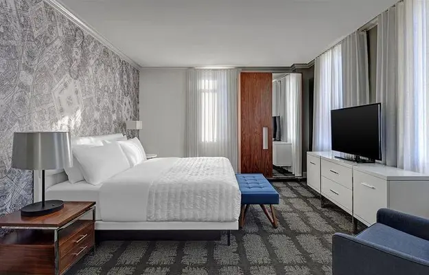 "A decidedly modern hotel in downtown Indianapolis that doesn't skimp on the amenities. Inside, you'll find a lobby with a curated library of books...guest rooms are lush and tastefully decorated." Full review