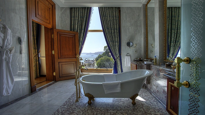 “In a 19th-century Ottoman palace, this 5-star hotel features an infinity pool with views of the Bosporus.”