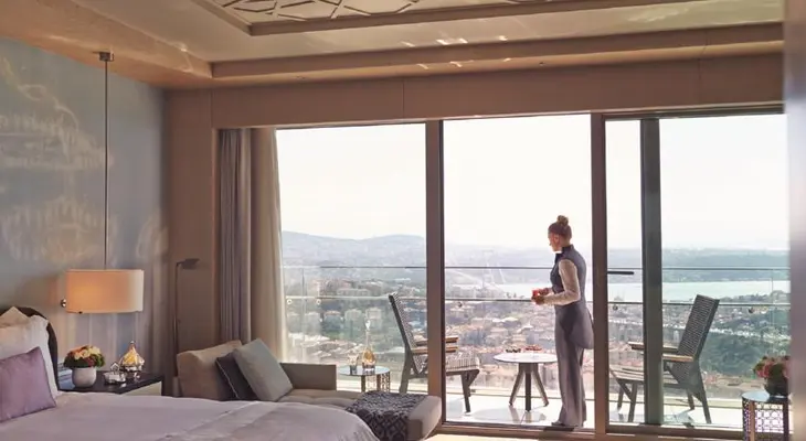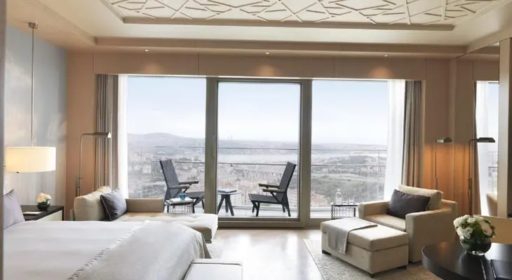 "A romantic stay at Raffles Istanbul comes with sweeping panoramic views of the Bosphorus, stylish accommodations featuring floor-to-ceiling windows and private balconies (yes, there's 24-hour butler service, too), world-class gastronomic experiences, and a spa with couples rooms and Turkish baths"