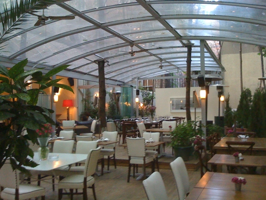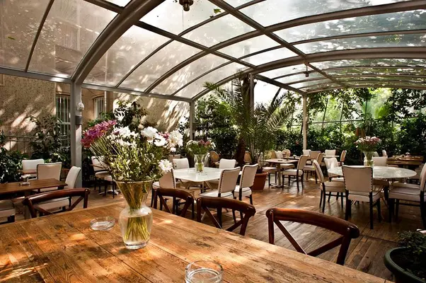 "An attractive, high-ceilinged dining room and lounge, as well as a large garden open in the summer months, provide a smart but relaxed setting for dinner and drinks."