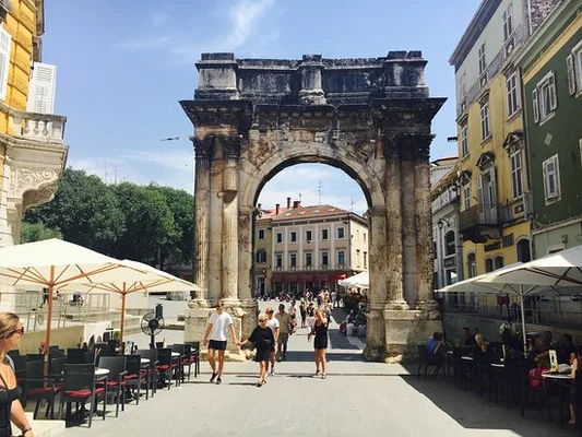 Farther along Sergijevaca, you'll run right into the Sergi Arch, which opens to Trg Portarata and stands in the middle of a busy shopping area. — Frommer's