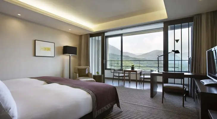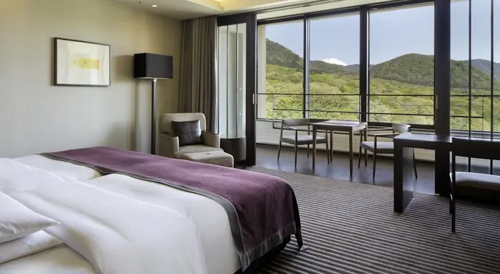 “This slickly designed new hotel is a treat offering some of the largest rooms in Hakone and elegant facilities, including lounge, two restaurants and the lzumi onsen spa.”