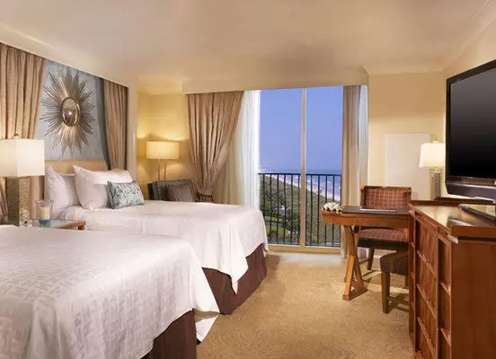 "Atlantic Beach's only high-rise oceanfront hotel captures the serenity of the ocean through a color palette of sea-foam green, sand, and sky blue." Full review