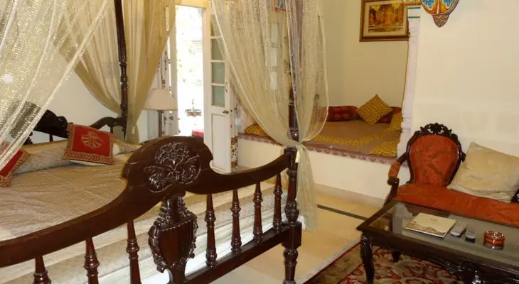 "A beautiful, quiet, converted mansion with 47 clean, elegant and atmospheric rooms (all a/c). There is a wonderful rooftop swimming pool, surrounded by Rajasthani domed pavilions."