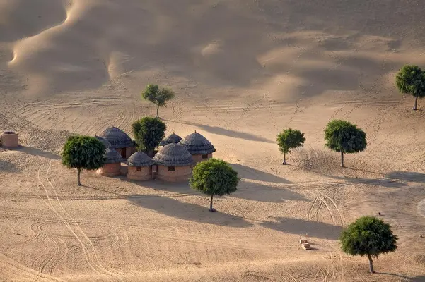 “A two-hour drive (90 km [56 miles]) from Jodhpur takes you to rural Khimsar in the Thar Desert, a graceful palace and fort where the best rooms are in the original structure.”