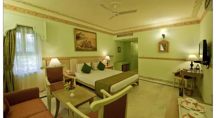 “Two kilometres east of town, off the Pokaran road, this large, modern, but traditional-style, place was built according to the ancient Indian design principles of vaastu, which is similar to feng shui.”