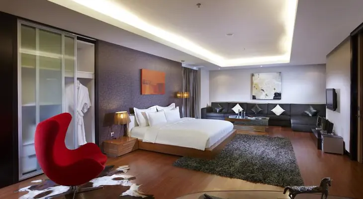 “Cool, contemporary hotel with a lagoon pool in the center of Kemang, Jakarta’s hip urban village.”