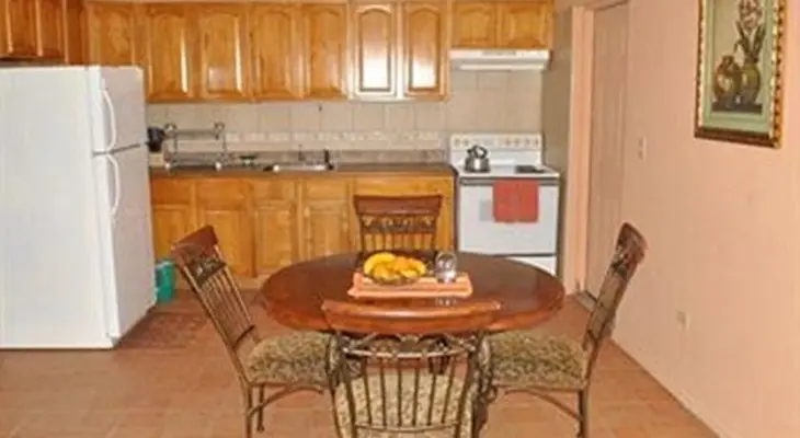 "Large a/c concrete block featuring clean, comfortable rooms with tiled floors, cable TV and private bathrooms."