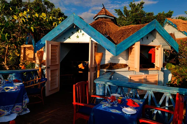 "The accommodations consist of a dozen charmingly idiosyncratic cottages and suites with wood and wicker furnishings, bright colors, mosquito netting hanging from poster beds" Full review