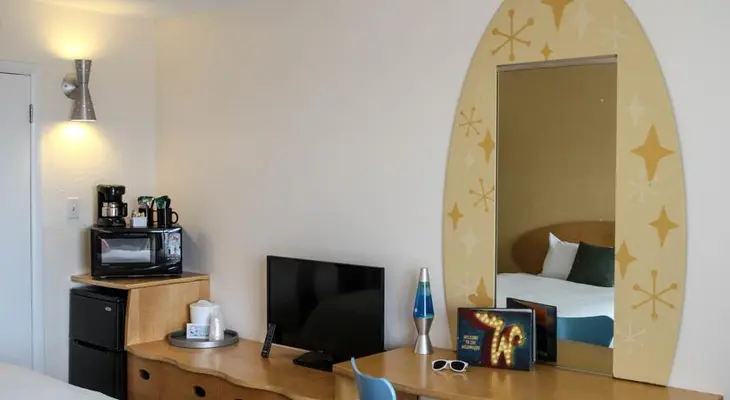 “The Starlux is a family-friendly boutique hotel with highly stylized 1950s futuristic decor.”