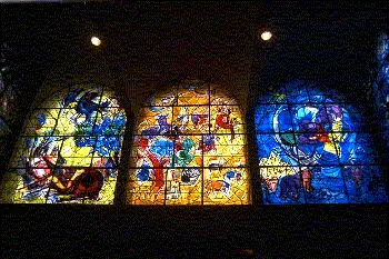 “Stained-glass windows by Marc Chagal... each of the 12 colourful abstract panels depicts one of the tribes of Israel.”