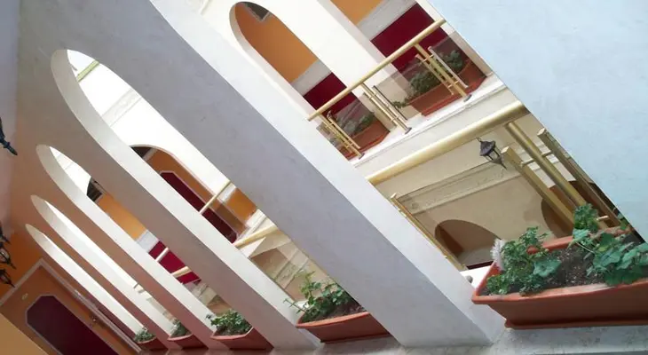 “A traditional-style Middle Eastern inn built some 300 years ago, but redesigned in 2006, the Al Hashimi is set around a handsome interior atrium.”