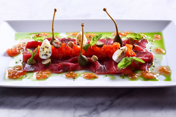 “The main courses are exquisitely presented and strong on intricate taste constructions, such as pan-seared sea fish fillets on roasted eggplant with za’atar (Arabic spices).”
