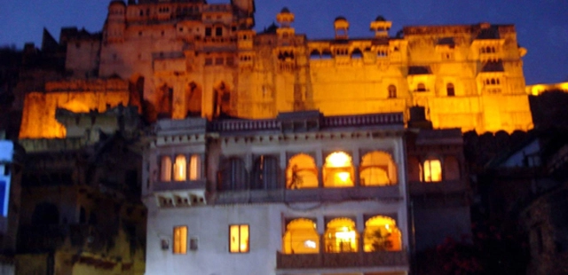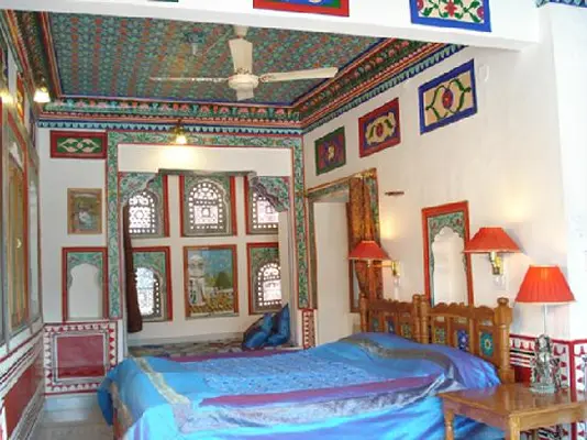 “Family-owned and operated, this hotel in a 200-year-old sprawling haveli preserves many of its original features, including carved stone-work.”