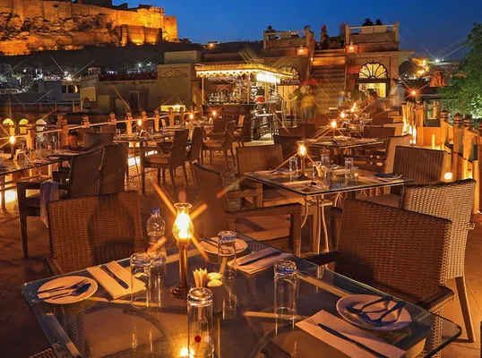 "This candlelit rooftop restaurant at the Pal Haveli hotel is the perfect place for a romantic dinner, with superb views to the fort, clock tower and Umaid Bhawan." Full review