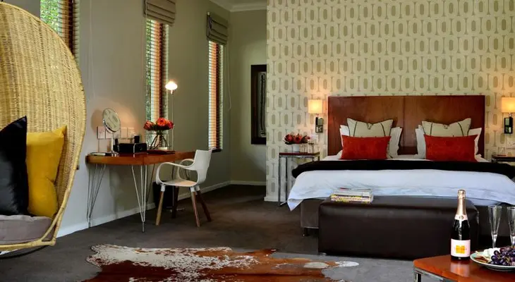 "The 16 rooms have sleek decor with vibrant contemporary African motifs (brightly colored patterns, funky wallpaper, animal-hide rugs), and the lobby feels more like a cozy alpine living room." Full review