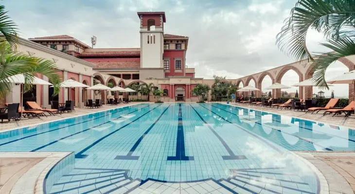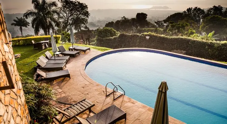 Despite its neither-here-nor-there location, visitors to this pastel-hue citadel on Lake Victoria happily trade-off the plush comfort of the rooms and extensive facilities for its remote position. — Fodor's