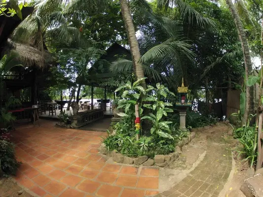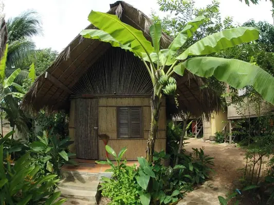 “This classic backpacker hang-out offers basic ground-level and stilted thatched bungalows (all with shared bathroom) amid lush foliage, and a coveted four-bed dorm in the main house on the river.”