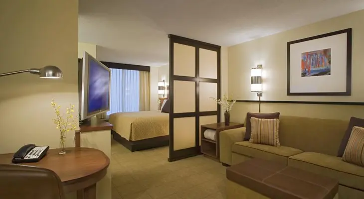 The 134-room Hyatt Place Kansas City Airport hotel is a three-pearl chain property that attracts leisure and business travelers seeking proximity to the airport. — Oyster