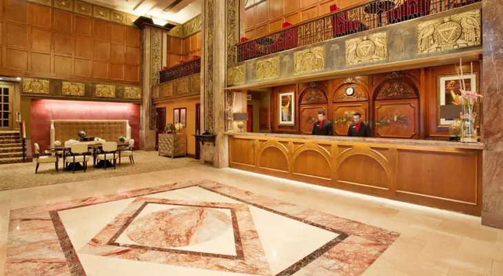 Its rooms feature contemporary art deco styling, with the golden statue of Dawn watching over the lobby's warm, dark paneling. — Fodor's